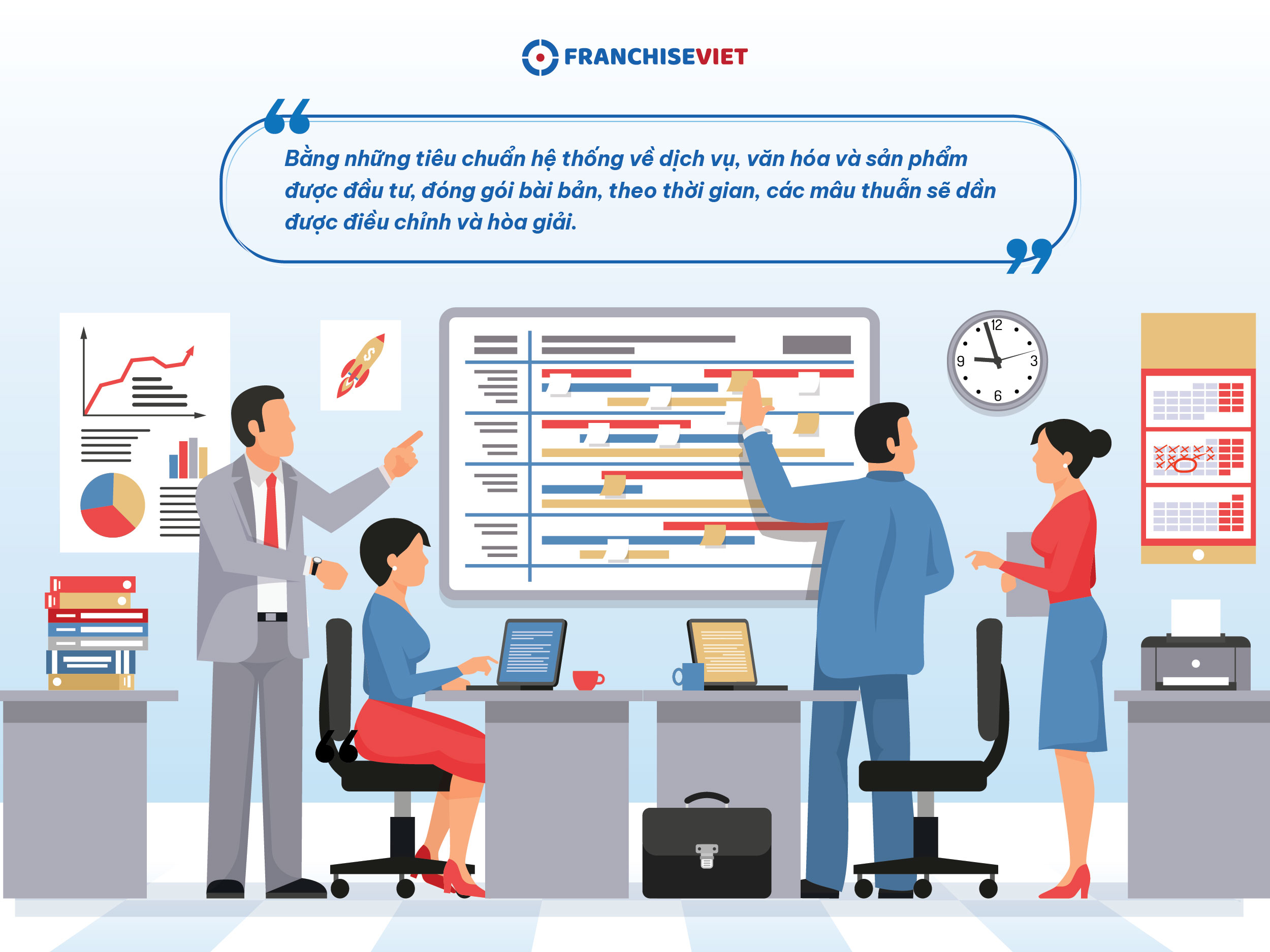 Trong mô hình nhượng quyền, hệ thống quản trị đóng vai trò như “bộ khung” điều tiết các mối quan hệ giữa bên nhượng quyền và bên nhận quyền. Bằng những tiêu chuẩn hệ thống về dịch vụ, văn hóa và sản phẩm được đầu tư, đóng gói bài bản, theo thời gian, các mâu thuẫn sẽ dần được điều chỉnh và hòa giải. Khi các mắt xích vận hành nhịp nhàng, được bảo dưỡng định kỳ và thay thế kịp thời những chi tiết hỏng hóc, hệ thống sẽ duy trì được sự ổn định, bền vững và khả năng tự cải tiến liên tục. Đó chính là nền tảng của một hệ thống nhượng quyền quản trị hiệu quả, nơi mâu thuẫn không bị triệt tiêu, mà được điều tiết, chuyển hóa thành động lực cho sự hoàn thiện và phát triển.